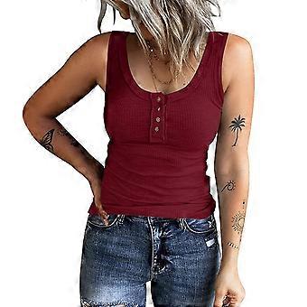 חולצת טי ללא שרוולים לנשים עם צווארון הנלי, צווארון V, מכופתרת, טופ קיץ צמוד, בגזרה קלרה XL