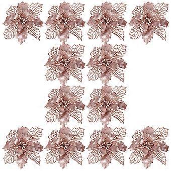 1 סט 12 יח'ס תליוני עץ חג המולד נצנצים פרחים מלאכותיים חלולים