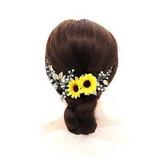 סרט חמניות כיסוי ראש קל משקל בעבודת יד למסיבת חתונה אביזרי שיער כלה עם סרט פרחוני מוזהב בהתאמה מוצקה לנשים דקורטיביות