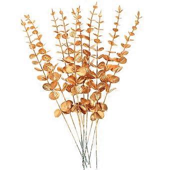 גבעולי אקליפטוס מלאכותיים עלים זהובים לא דוהים ענפי אקליפטוס מלאכותיים לעיצוב הבית 38.00X3.00X3.00 ס"מ ידידותי לאלרגנים 10 יחידות