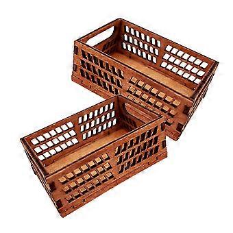 סל אחסון לבית בובות מעץ חום 2 יחידות לארגון מיניאטורות