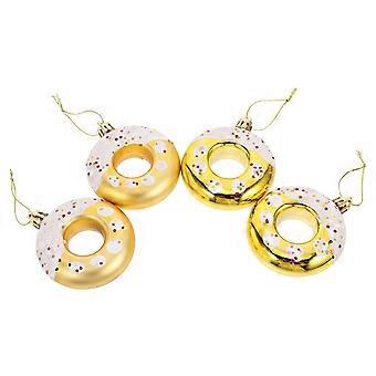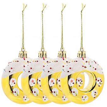 קישוטי תליית סופגניית פלסטיק מוזהבת לקישוטי עץ חג המולד וציוד למסיבה 4 חלקים