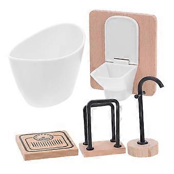 ריהוט בית בובות סט אמבטיה מיניאטורי ברז אמבטיה חומר עץ 3 יחידות
