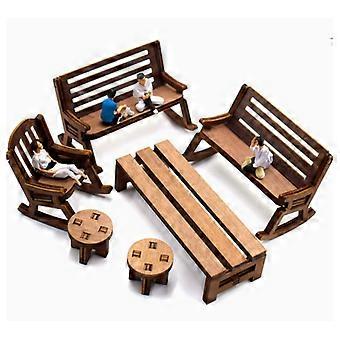 4 יחידות שולחן וכיסאות עץ מיניאטוריים סט ריהוט מיניאטורי בית בובות ספסל וכיסא כפרי זעיר אביזרי גן פיות