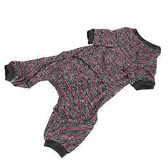 פיג'מת כלבים חמה נוחה נמתחת 4 רגליים פיג'מת כלב מפוספסת לכלבים קטנים חתולים ישנים XL