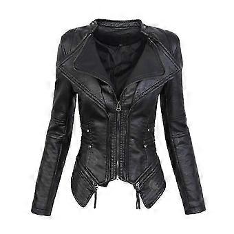 Women's Faux Leather Biker Short Jacket Casual Slim Fite - XN