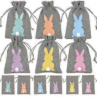 24 יחידות ארנב חג הפסחא Burlap שקיות מתנה עם שרוך ארנב פשתן תיק ממתקים