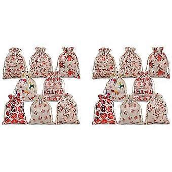 24pcs שקיות פשתן חג המולד עם שרוכים יוטה חג המולד
