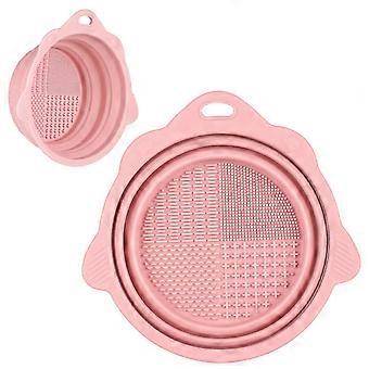 קערת ניקוי מברשת איפור סיליקון מתקפלת - כלי ניקוי נייד למברשות איפור, נשיפות וספוגים (ורוד)