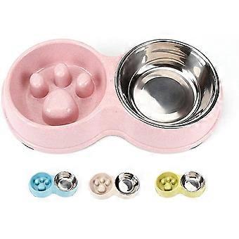 Kongqtee Double Slow Feeder - קערות מזון ומים לחיות מחמד - לכלבים קטנים ובינוניים, גורים, חתולים - קערת נירוסטה נשלפת - מונעת החלקה - A