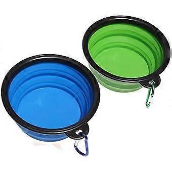 Kongqtee Collapsible Dog Bowl, 2 חבילות קערת נסיעות, עשויה סיליקון באיכות מזון, ללא BPA, קערת האכלת מים מתקפלת ניידת לכלבים לחתולים, שתיים מתנהלות