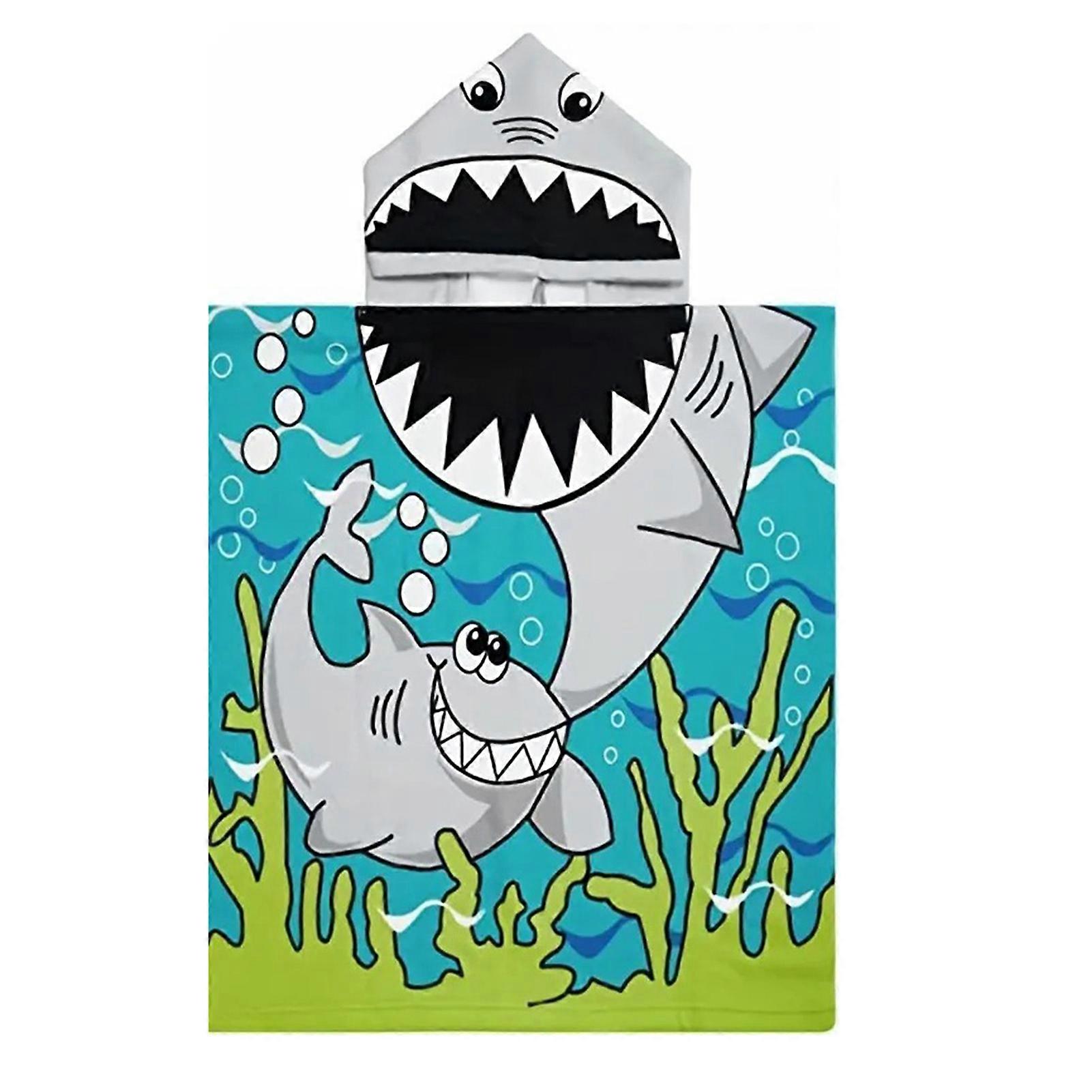Kids Shark Beach Towel with Hood Microfiber Super Absorbent Soft Bathrobe for Summer Swimwear