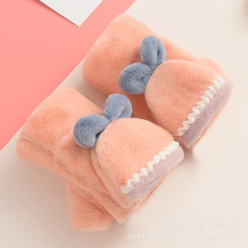 Shengqi Winter New Children's Flip Gloves Cute Rex Rabbit Fur Plus Velvet Thickened Students Warm-keeping