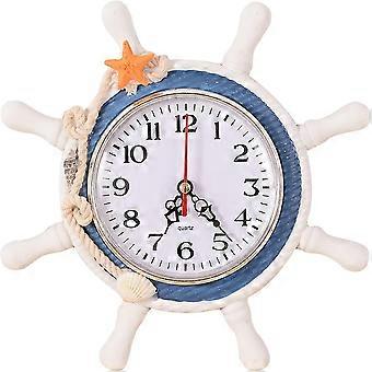 Shxx Outdoor Clocks For Terrace, 4 Inch Mediterranean Style Nautical Wood Ship Wheel Hanging Decoration Large Silent Wall Clock Beach Sea Theme,white