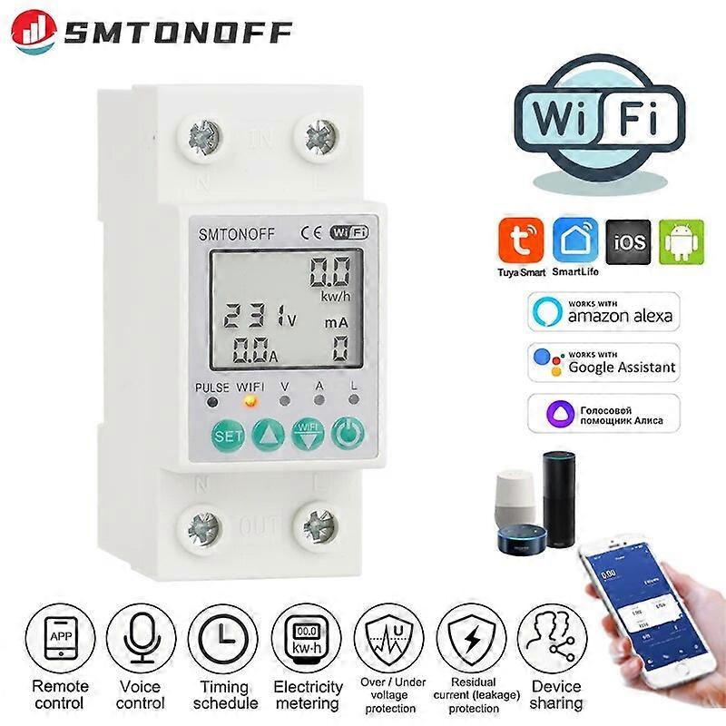 SMTONOFF WiFi Energy Meter Smart Switch Over Under Voltage Protection Residual current protection Remote control by Tuya APP