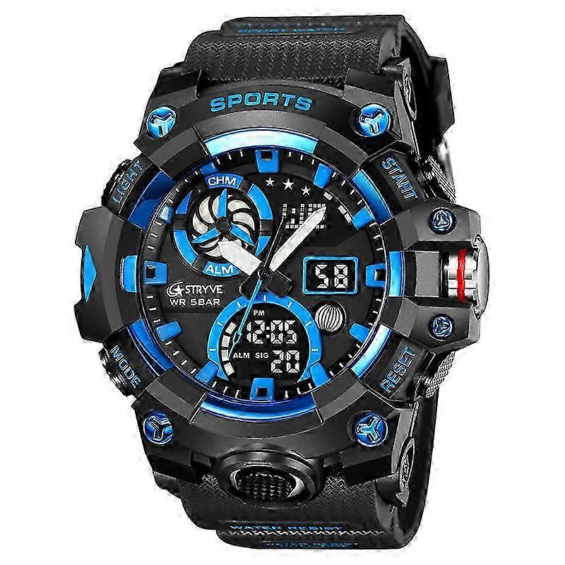 STRYVE Top Brand Electronic Watch For Men Outdoor Sports Waterproof Dual Time Display Quartz Wristwatches Rubber reloj hombre 26s