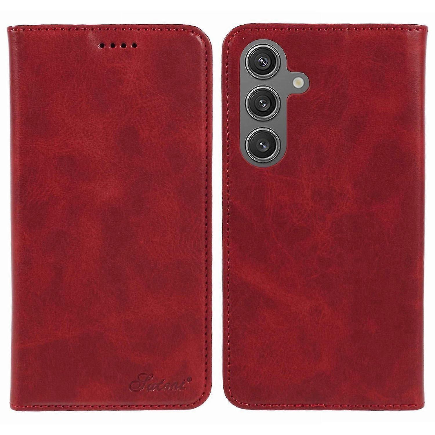 Suteni For Samsung Galaxy S24 Mobile Phone Case Pu Leather Foldable Stand Wallet Cover - Red