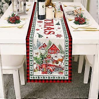 רץ שולחן חג המולד, משאית אדומה Burlap רץ שולחן חג המולד קישוטים חג המולד שמח