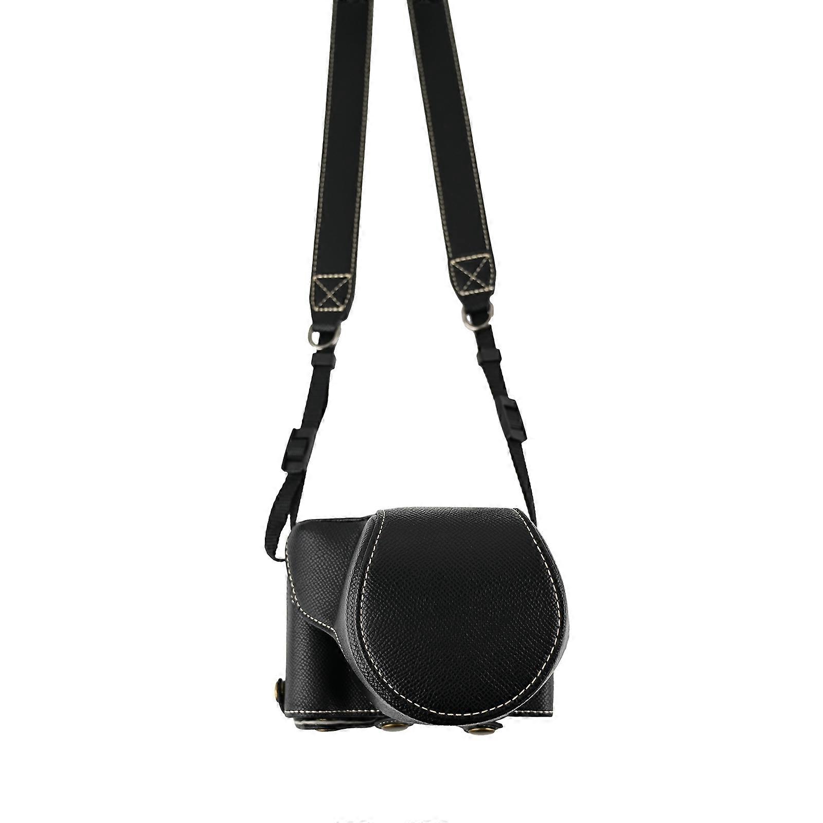 TKdaddy For Canon EOS R50 V Textured PU Leather Camera Case with Battery Hole + Strap Black