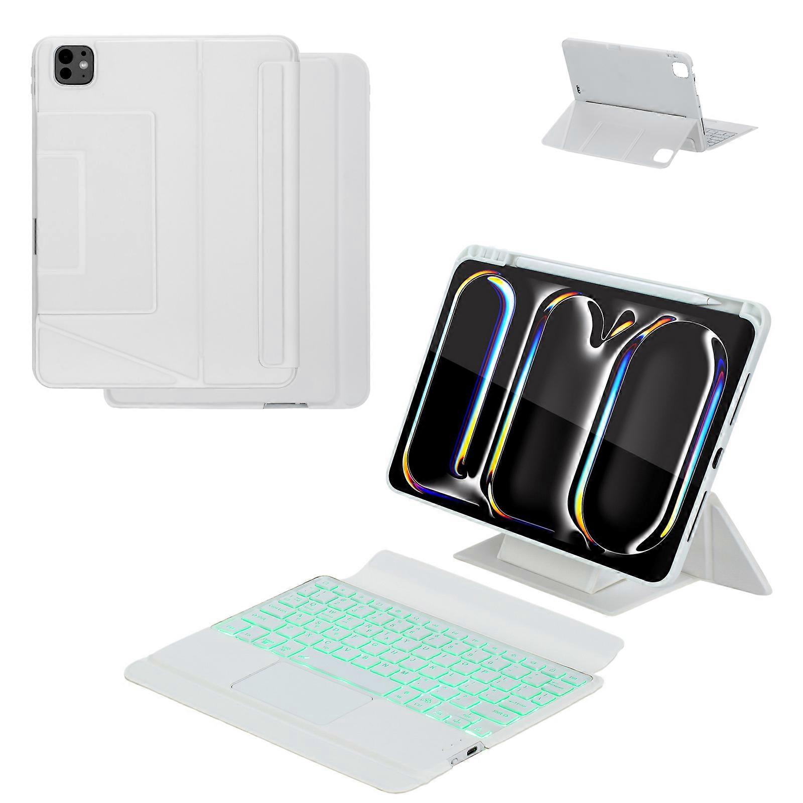 TKdaddy For iPad Pro 11 (2024) Detachable Bluetooth-compatible Keyboard Stand Case with Touchpad and Backlit White