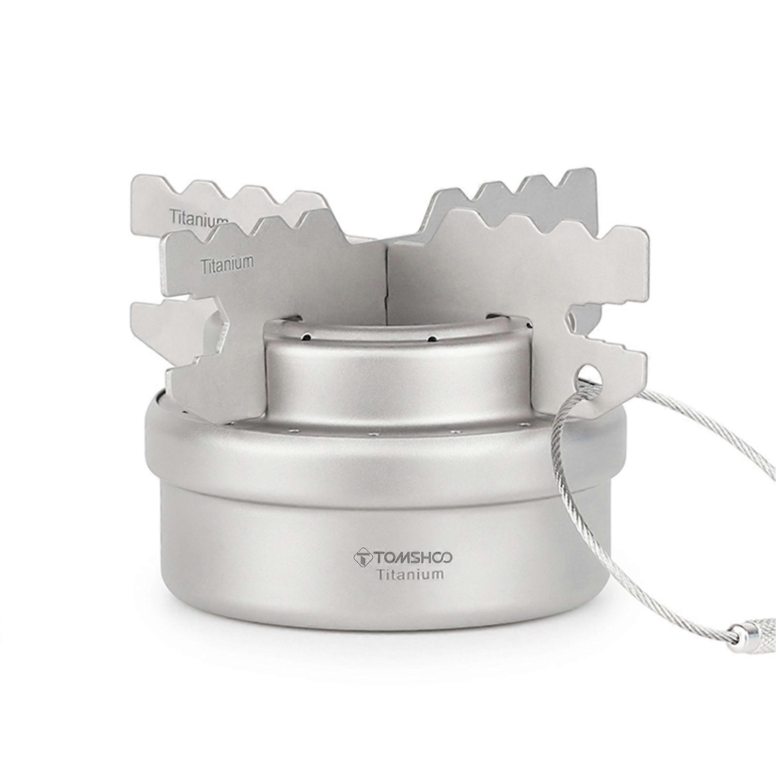 TOMSHOO Outdoor Titanium Alcohol Stove & Rack Combo Set Mini Ultralight Portable Liquid Alcohol Stove with Cross Stand Stove Rack Support Stand
