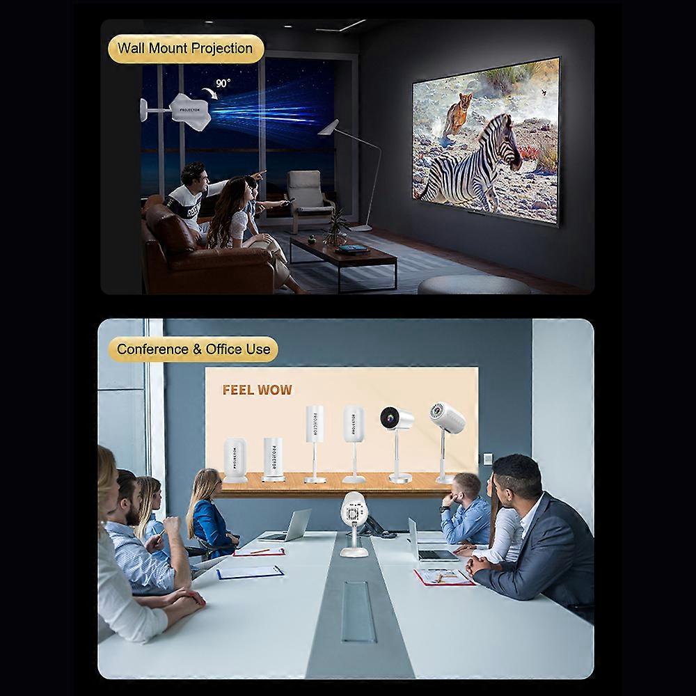 Projector 720P Home Theater Android 11 Video Projector Support 4K Decoding 120in Display Movie Projector with Retractable Rod Keystone Function Electronic Focus with Multiple Ports Support TV Box Computer Laptop for Home Theater Outdoor Media Player Enter Features: 【720P High Resolution Projector】The TS-6 projector offers stunning 720P clarity with a native resolution, providing you with a superior viewing experience. Support 4K video decoding. With 240 ANSI lumens, expect bright and clear images even in well-lit environments. The Android 11 system ensures smooth performance for all your multimedia needs. 【Retractable and Rotatable Projector Head】This model features a retractable design for easy setup and storage. The 90° rotatable projector head allows for flexible projection, even on the ceiling, creating a personalized home theater experience. 【Large Projection Size & Auto Keystone Correction】The projector supports a large projection size up to 120 inches, perfect for creating a cinematic experience at home. With automatic keystone correction, it offers an easily adjustable viewing experience, ensuring a perfect screen every time. 【1+8G Memory and Multiple Interfaces】With a generous 1+8G memory, our projector can store a vast amount of media files for your entertainment needs. It also provides multiple connectivity options including BT, WiFi, and various ports for seamless compatibility with a variety of devices. 【Wireless Screen Mirroring & Surround Stereo Sound】Our projector features wireless screen mirroring function, allowing you to easily cast your device onto the big screen without the need for wires or cables. The surround stereo sound audio system enhances your viewing experience, immersing you in the action. Specification: Model: TS-6 Chip: HI352 Brightness: 240ANSI System Version: Android 11 Remote control: IR Remote Control Display : LCD+LED Lamp: 42W, 30000 hour Physical resolution: 1280*720P Image size/distance : 100”@2.95  meter Screen Scale: 16:9/4:3 Contrast ratio: 2000:1 Focus adjustment: electronic focus  Keystone correction: 4 sided trapezoidal correction 20 °; 4 point trapezoidal correction up and down 27 °;  left and right 48 ° Projection ratio: 1.35 : 1 Resolution support: Support 4K Wired screen sharing: Support Wireless Screen: Support RAM/ROM: 1+8G WiFi: WIFI 6 /5G/ 2.4G BT: Support BT Speaker: Support Interface: USB*1, AV*1, High Definition Multimedia Interface*1 , Audio output*1, Power interface*1    Supported voltage:  AC 100~240V 50/60Hz Power: standard: 49W; ECO <0.5W Net weight: 0.95KG Projector size: 220x124x124mm Language: Multiple languages Packing  List: 1 x Projector 1 x Remote control 1 x Power cord 1 x User manual 1 x Dust removal cotton swab