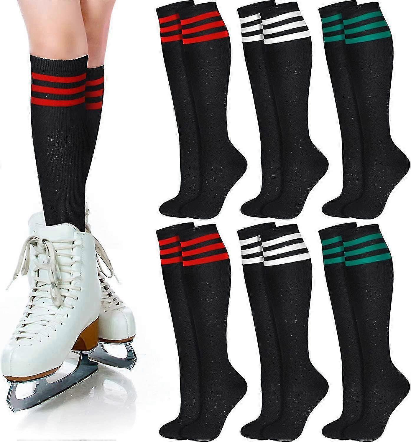 Unittype 6 Pairs Roller Skate Socks Knee Socks Skating Athletic Sport Socks Striped
