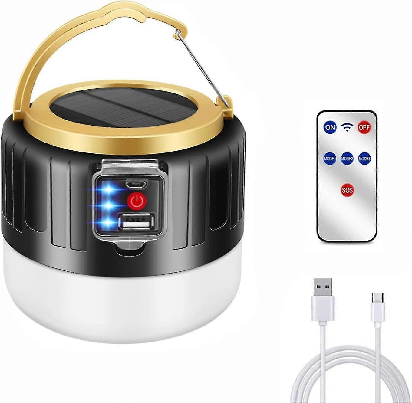 usb rechargeable led camping,solar lamp,5200 mah external battery,ipx6 waterproof,5 sos modes(black)