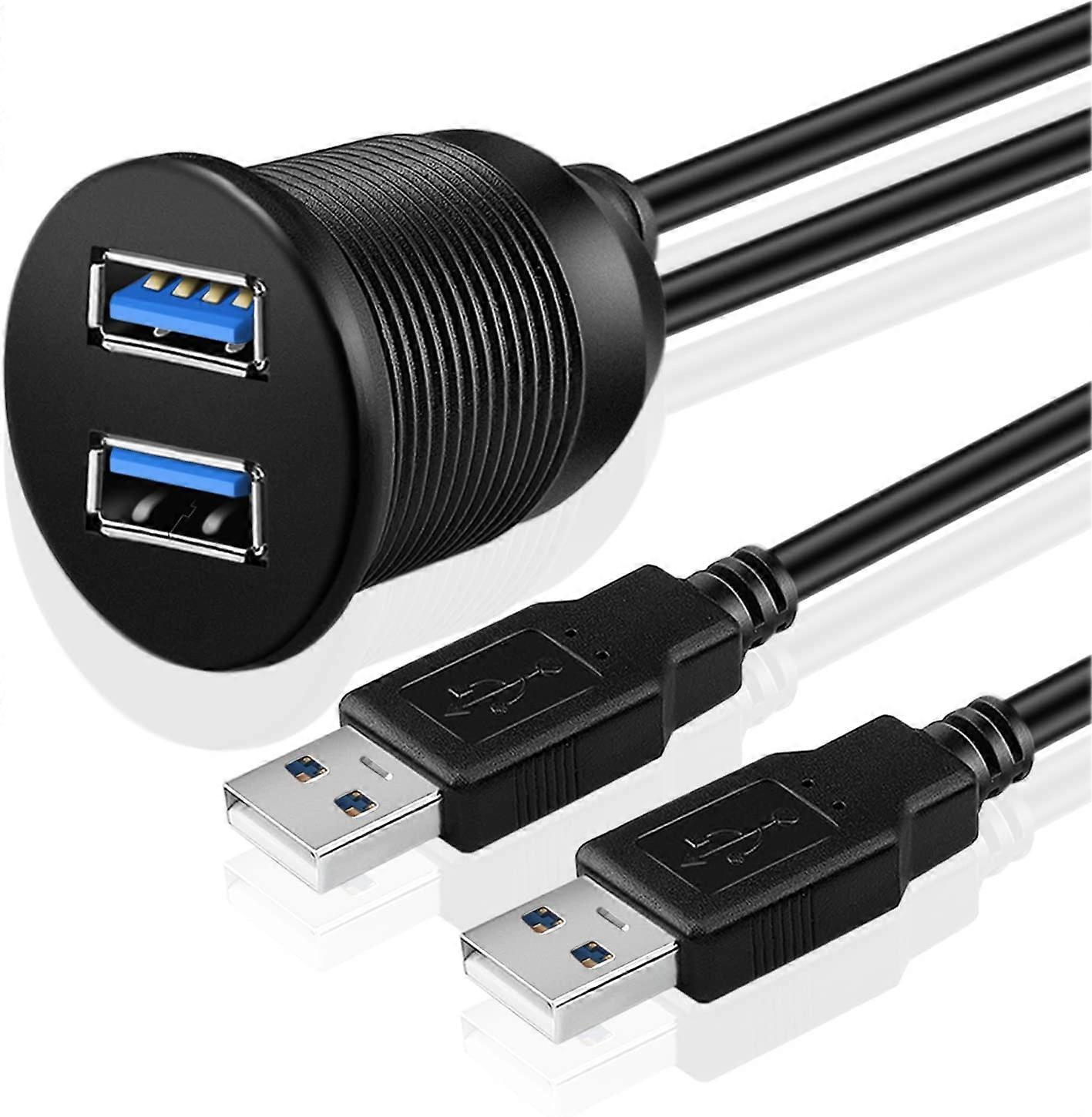 USB 3.0 Flush Mount Cable, Dashboard Panel Dash Mount 2 Ports Dual USB Socket Plug Jack Connector Extension Wire Cord Water Resistant Male to Female /