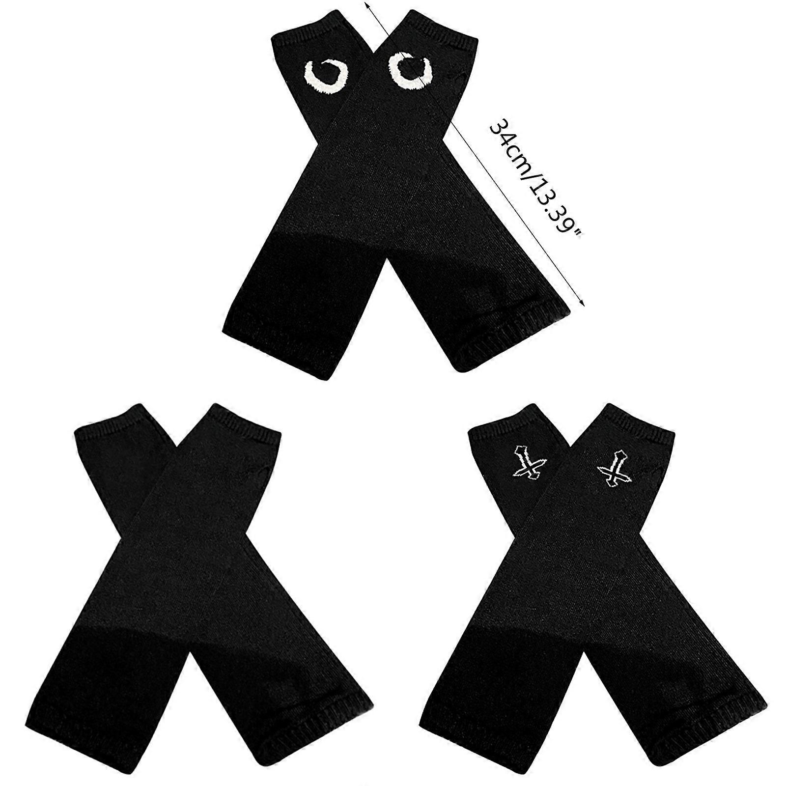Knitted UV for Protection Fingerless Long Gloves Women Arm Warmers Solid Warm Mittens Half Finger Sleeves Moon for Cross Black