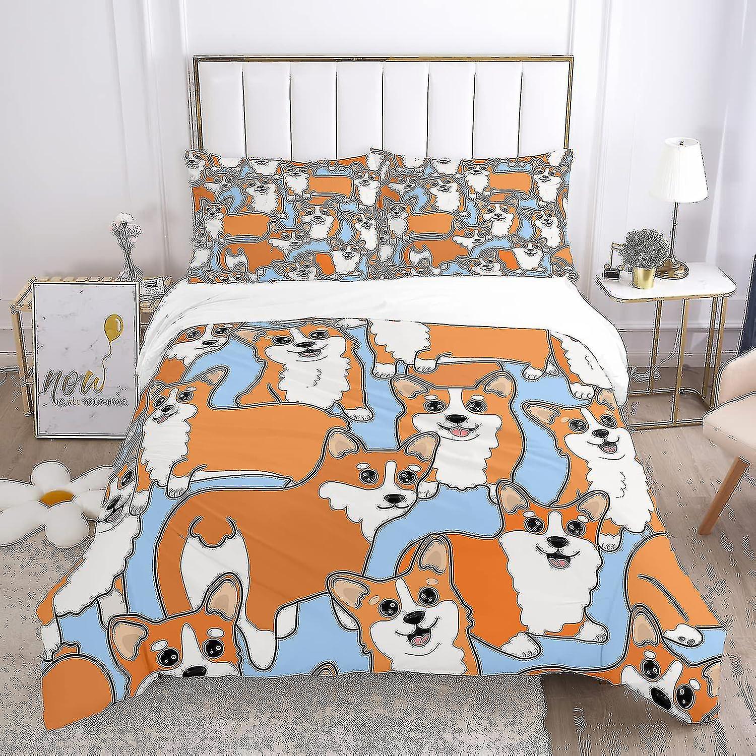 Uvacas Cute Cartoon Corgi Quilt Cover Full Size 3 Piece Bedding Set For Kids And Teens (a1,full) -ys