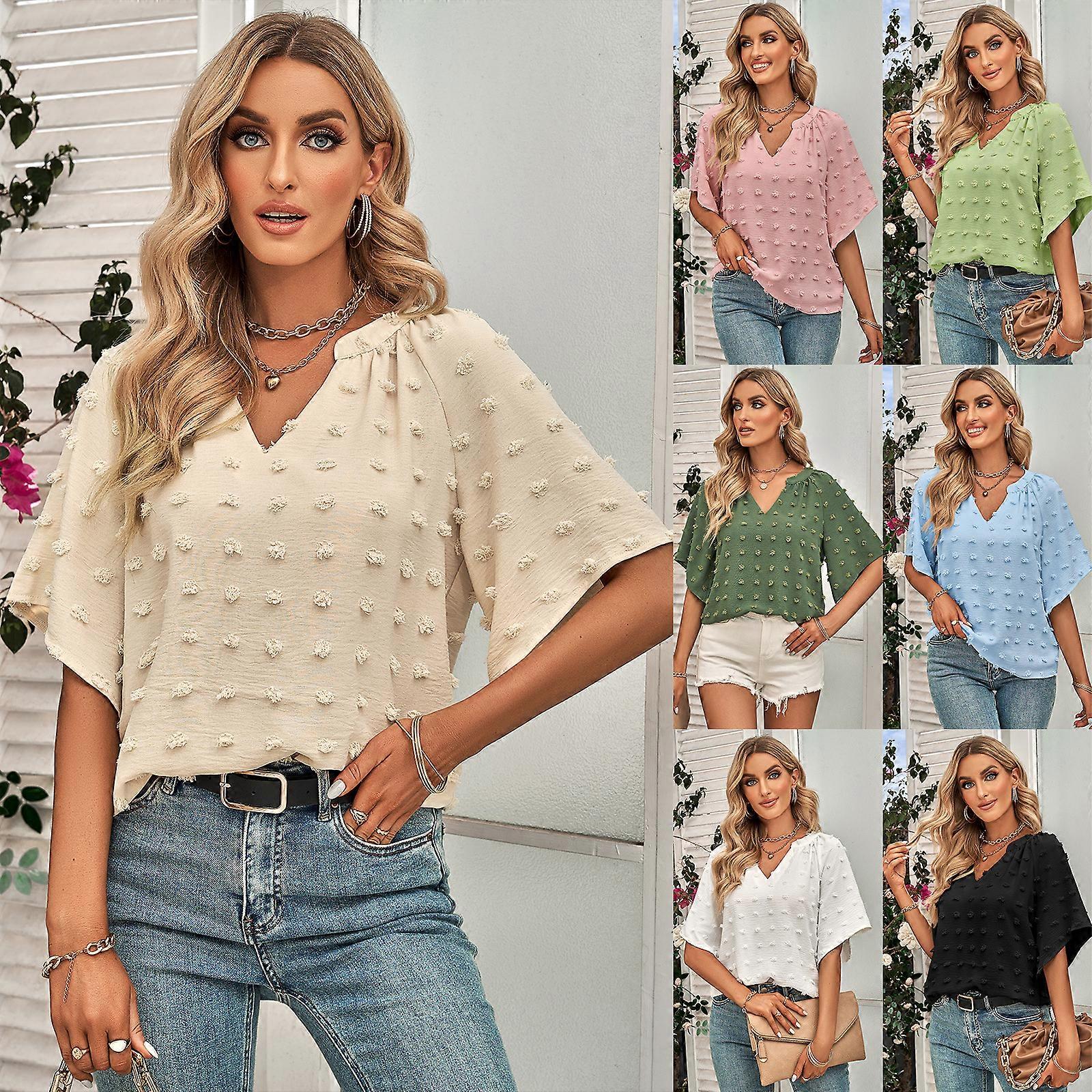 Women V Neck Ruffle Sleeve Blouse Flowy Shirts Dressy Summer Casual Women Tops -GSL