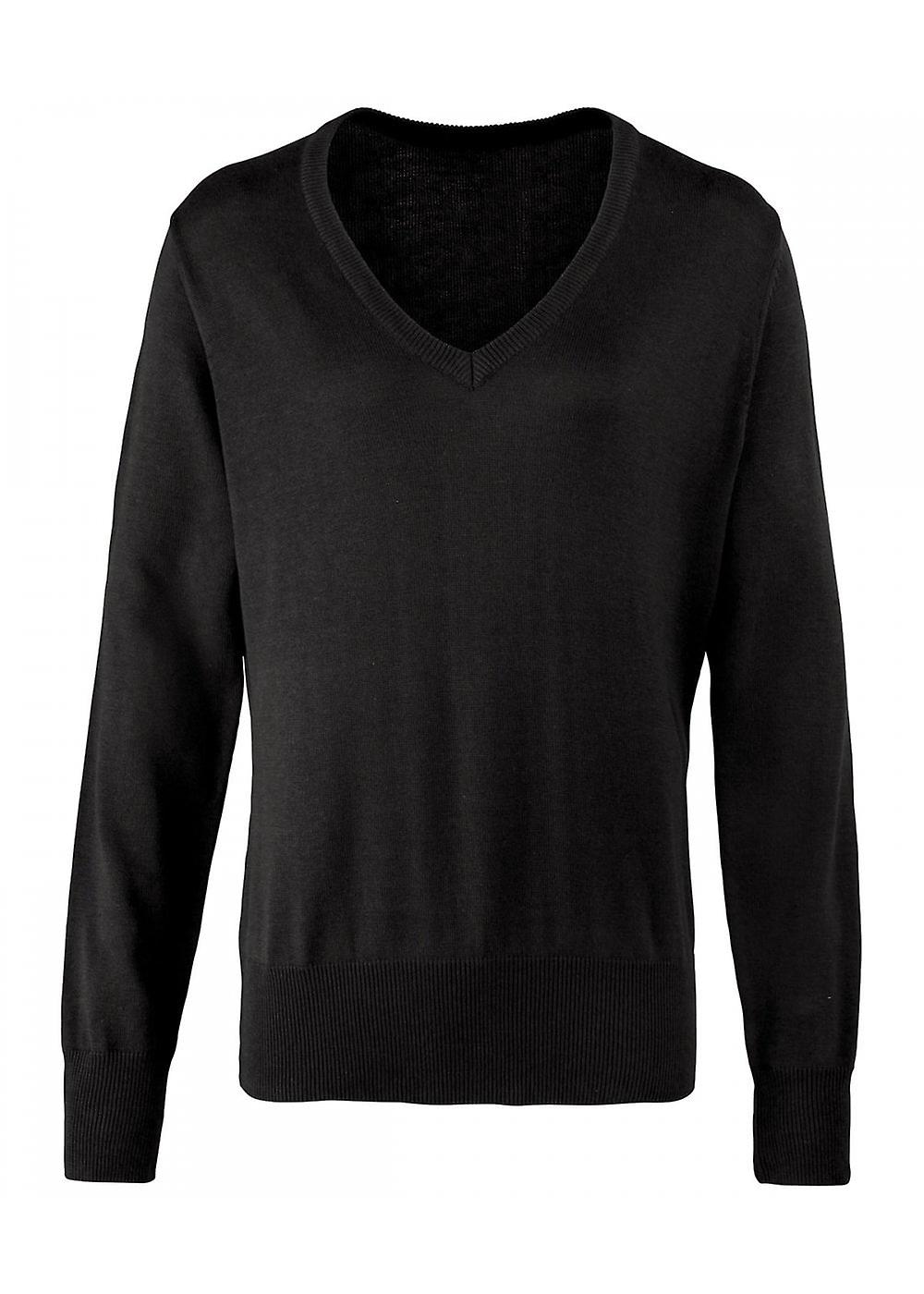 Women's Premier Ladies Knitted Cotton Acrylic V Neck Sweater PR696