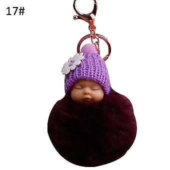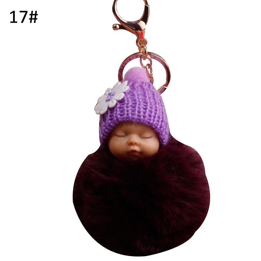 VANA Shop Cute Sleeping Baby Fluffy Pompom Plush Doll Hanging Pendant Key Ring Keychain