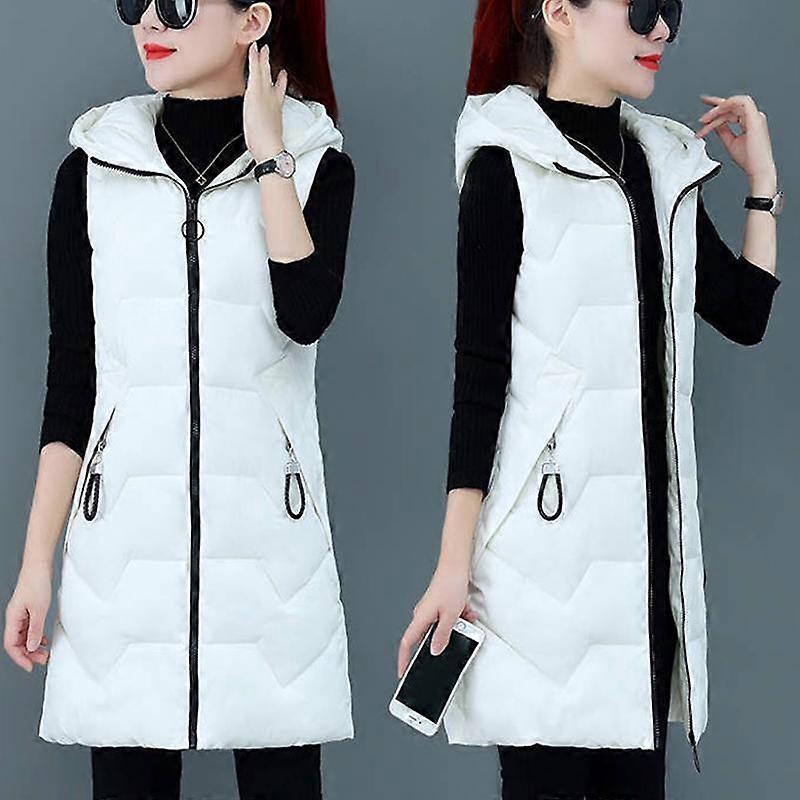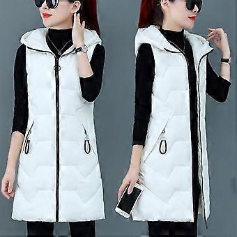 Vangull Women Cotton Vest Winter Autumn Female Sleeveless Waistcoat Hooded Warm Long Vest Solid Coat
