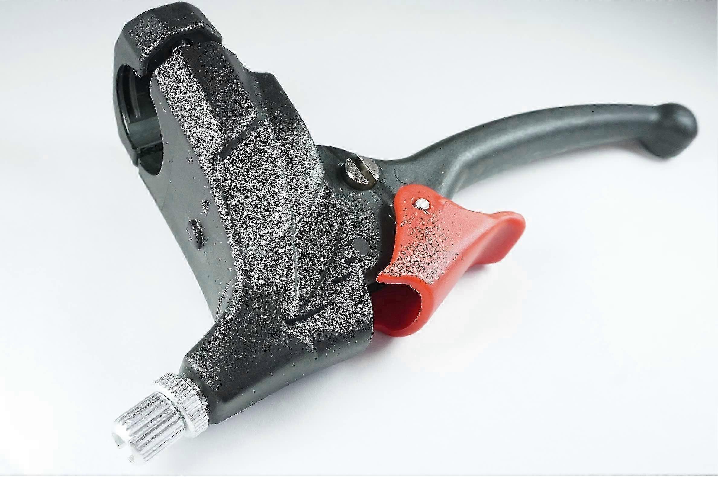 Varios Brake Lever with Parking Lever Lock – Open – Clamp Size 25 mm, Brake Cable Guide Straight 80 Degrees, Adjustment Screw, Insert Nut