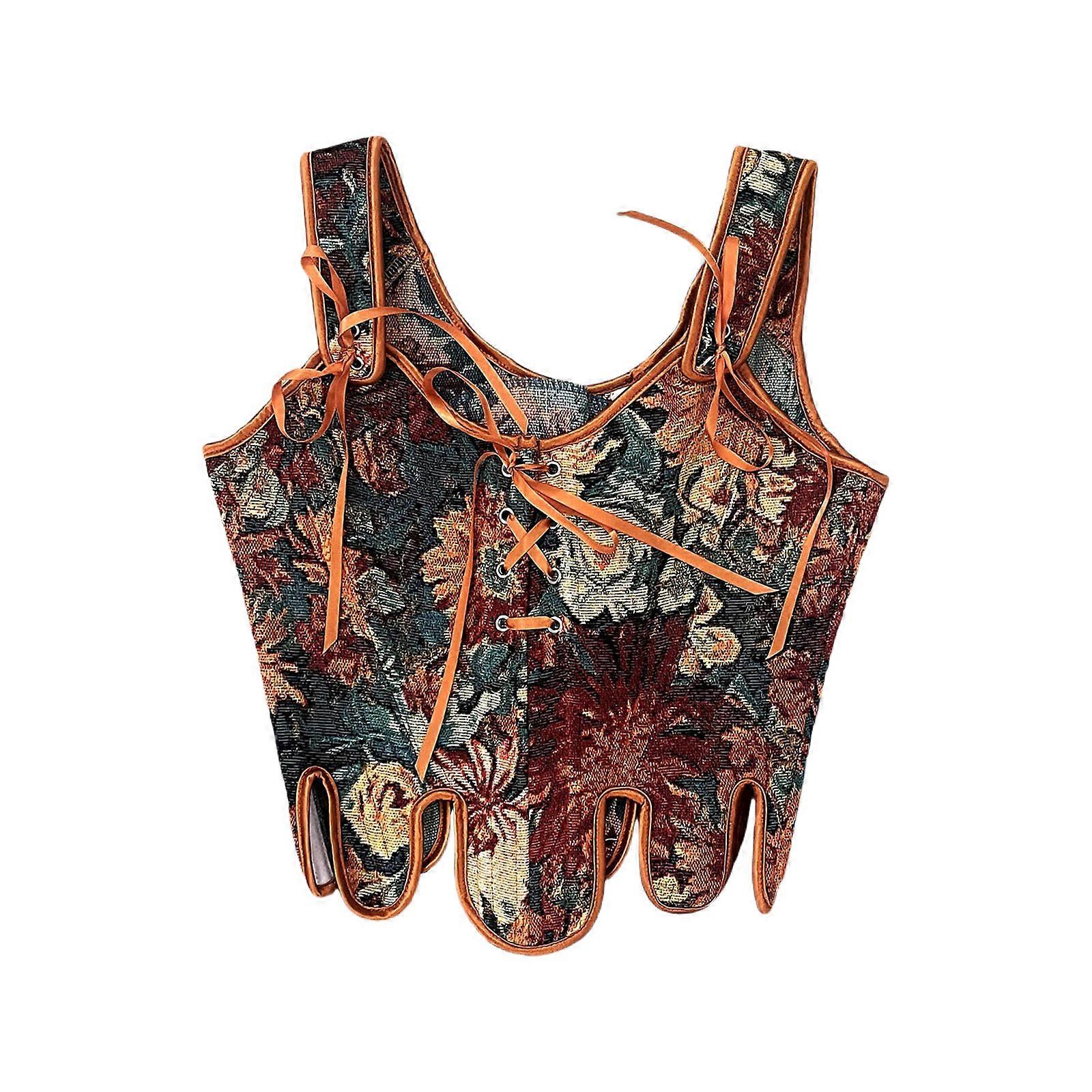 Victorian Gothic Corset Waist Shaper Adjustable Boned Structure Tie Chain Detailing Polyester Fabric XS fire