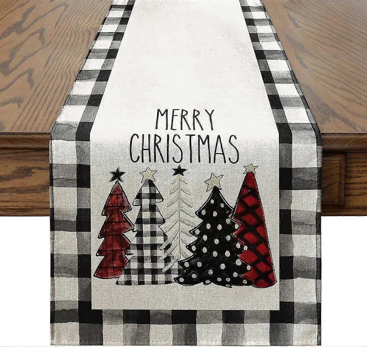 Wabjtam Christmas Trees Merry Xmas Table Runner, Holiday Kitchen Dining Table Decoration For Indoor Outdoor Home Party Decor