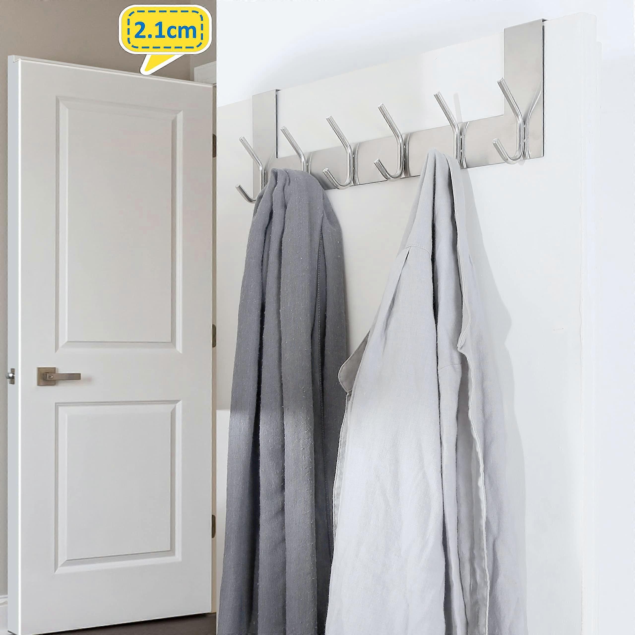 WEBI Coat rack for door, door hook, door hook with 6 hooks, door hook to hang bathroom, bedroom