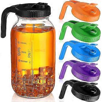 Wide Mouth Mason Jar Pour Spout Lids With Handle Reusable Plastic Flip Cap Lid, Leak Proof Airtight Seal, Jar Not Included