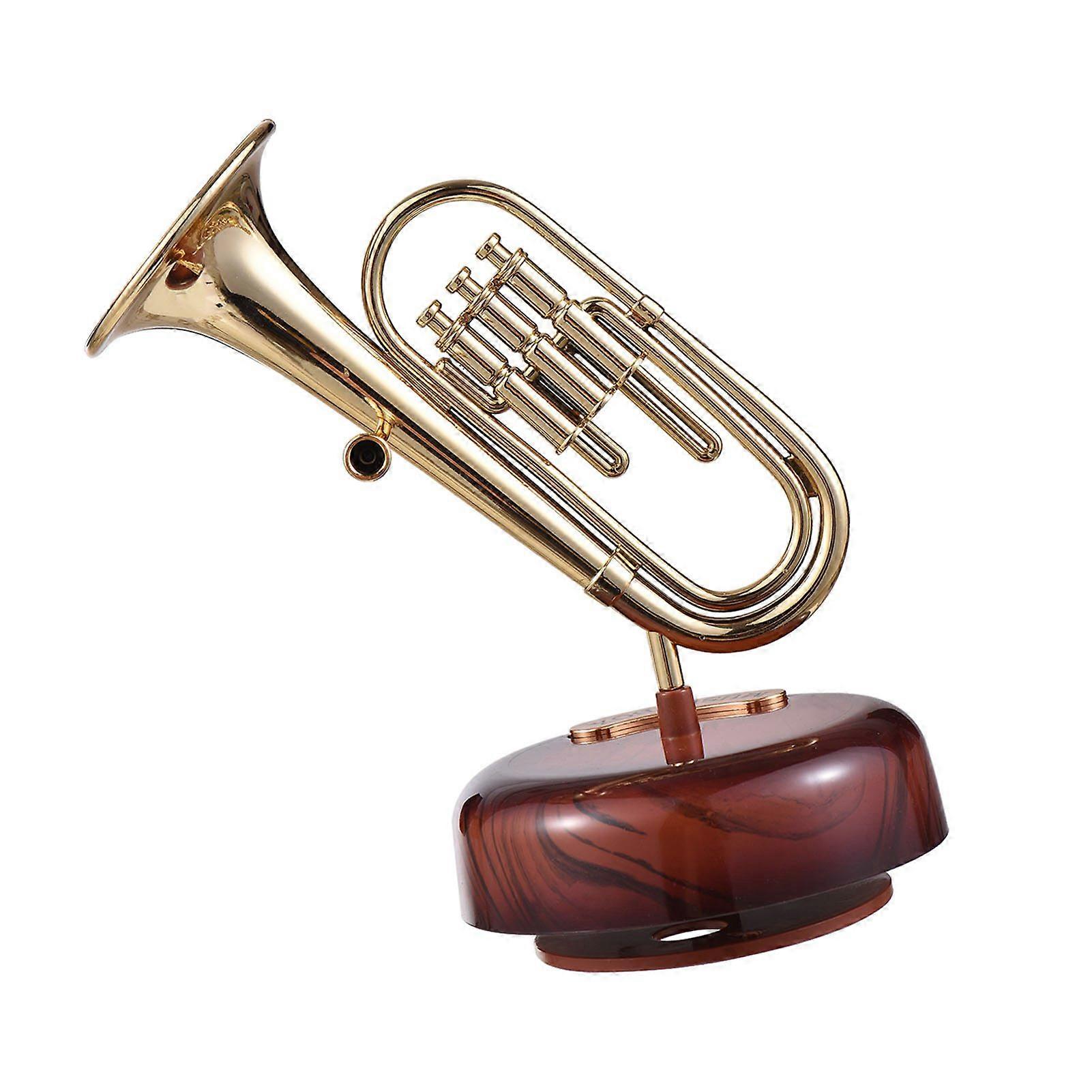 Trumpet Music Box Classical Wind Up Musicbox Twirling Music Box Rotating Base Brass Wind Instrument Miniature Replica Artware Gift for Christmas Birt