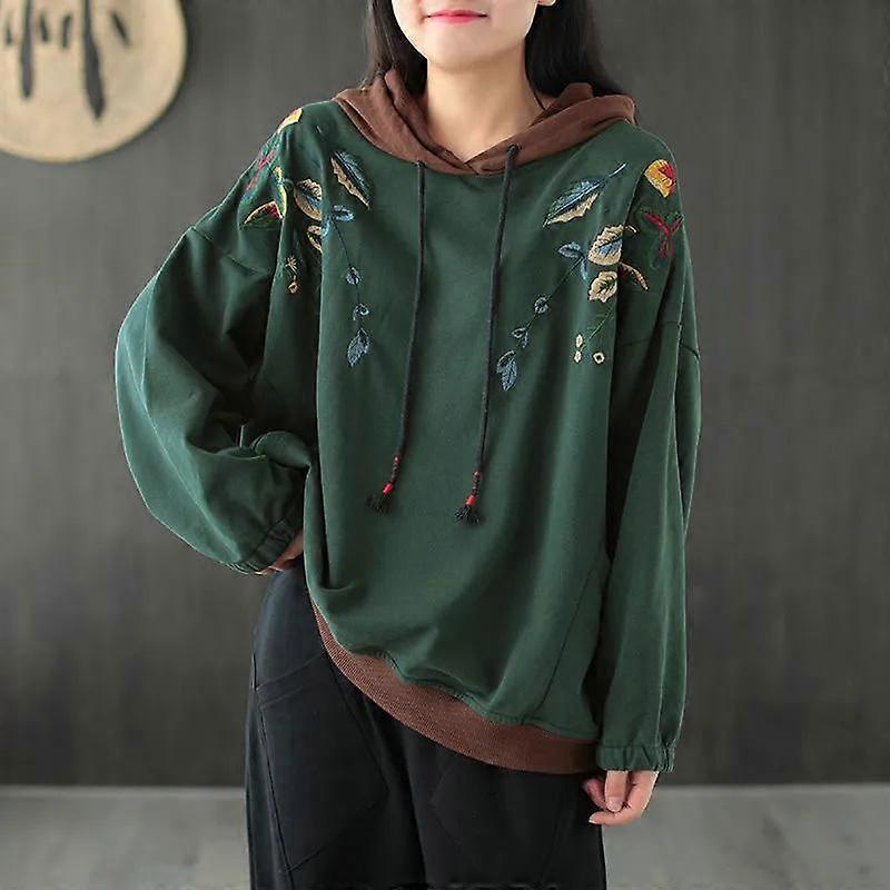 WTEMPO Hooded Sweatshirt Women's Plus Size Retro Loose Pullover Casual Embroidered Top Hooded Sweatshirt Women