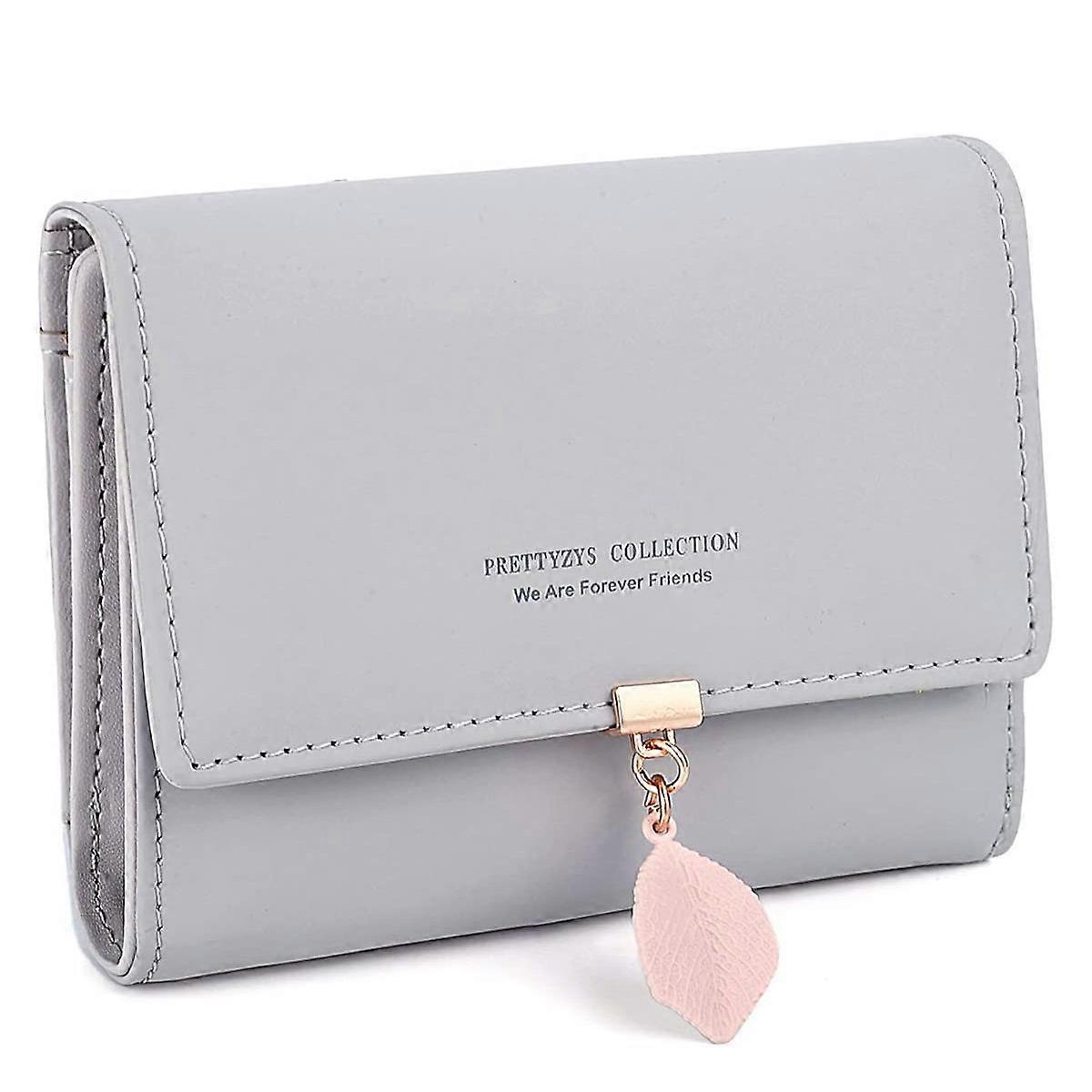 XIANRENGE Ladies Card Purse RFID Blocking Small Wallets for Women Leaf Pendant 5 Slots 1 Photo Window Zipper Coin Pocket Faux Leather, Grey