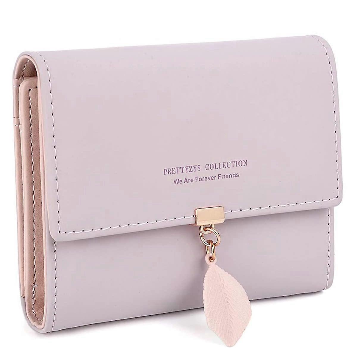 XIANRENGE Ladies Card Purse RFID Blocking Small Wallets for Women Leaf Pendant 5 Slots 1 Photo Window Zipper Coin Pocket Faux Leather, Pink