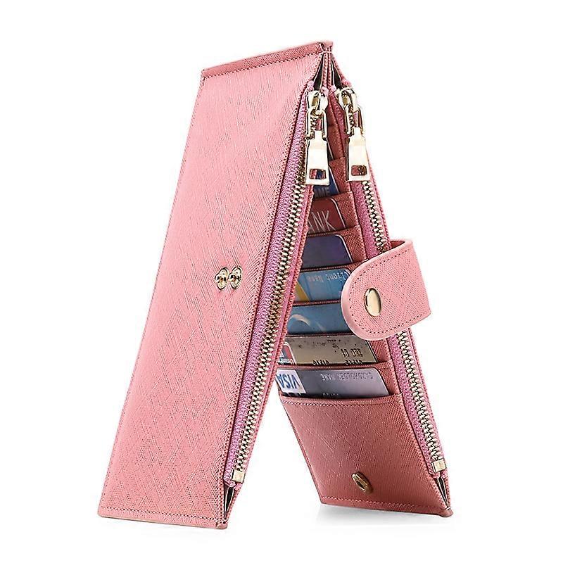 XIANRENGE Ladies Purse, Women's Wallet RFID Blocking Long Purse Women Credit Card Holder Zipper Coin Purse Phone Handbag, Pink