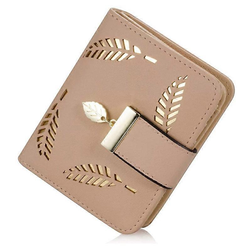 XIANRENGE Ladies Purse Wallet, Beige Womens Small Bifold Leather Purses Handbag with Cash/ID/Credit Card Holder Hollow Leaf, Ladies Vegan Coin Purses