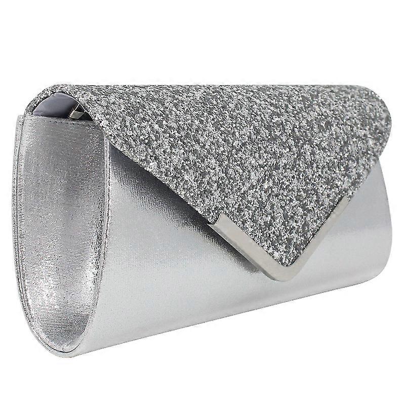 XIANRENGE Women's Envelope Clutch Bag Shiny Sequins Chain Shoulder Handbag for Wedding Party, Silver