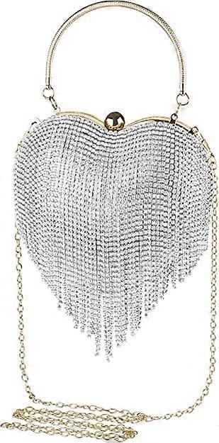 XIANRENGE Women Crystal Tassel Evening Clutch Purse Bag, Rhinestones Party Wedding Crossbody Shoulder Handbag