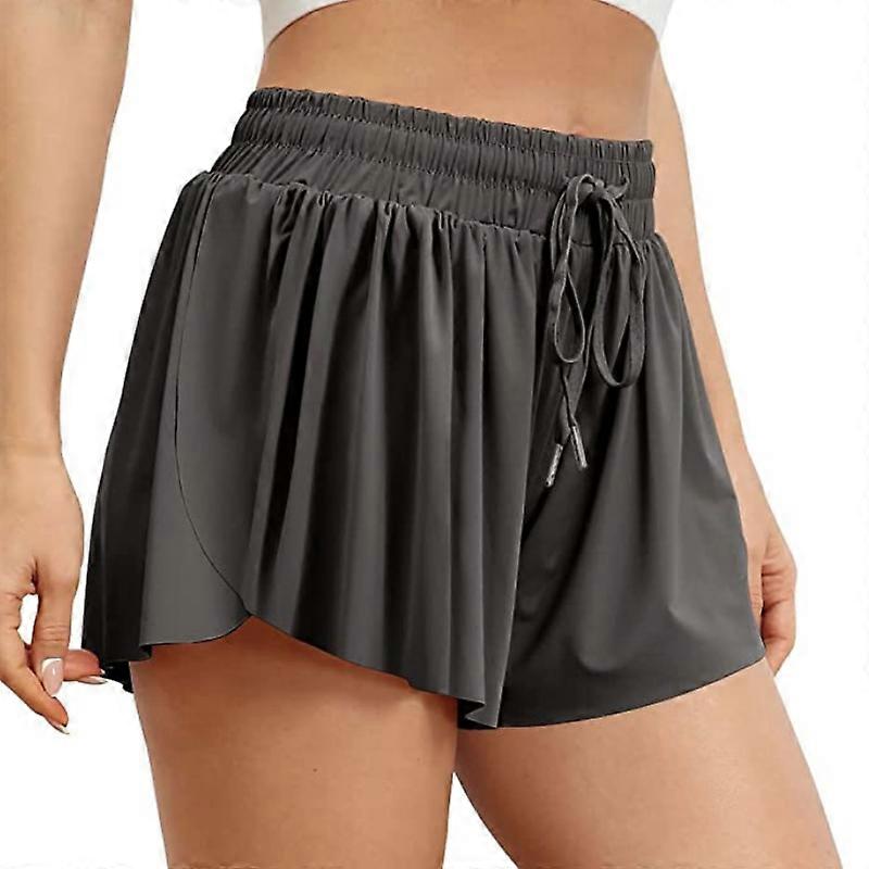 XIANRENGE Womens 2 in 1 Flowy Running Shorts Casual Summer Athletic Workout Biker Shorts High Waisted Gym Yoga Tennis Skirts, Grey