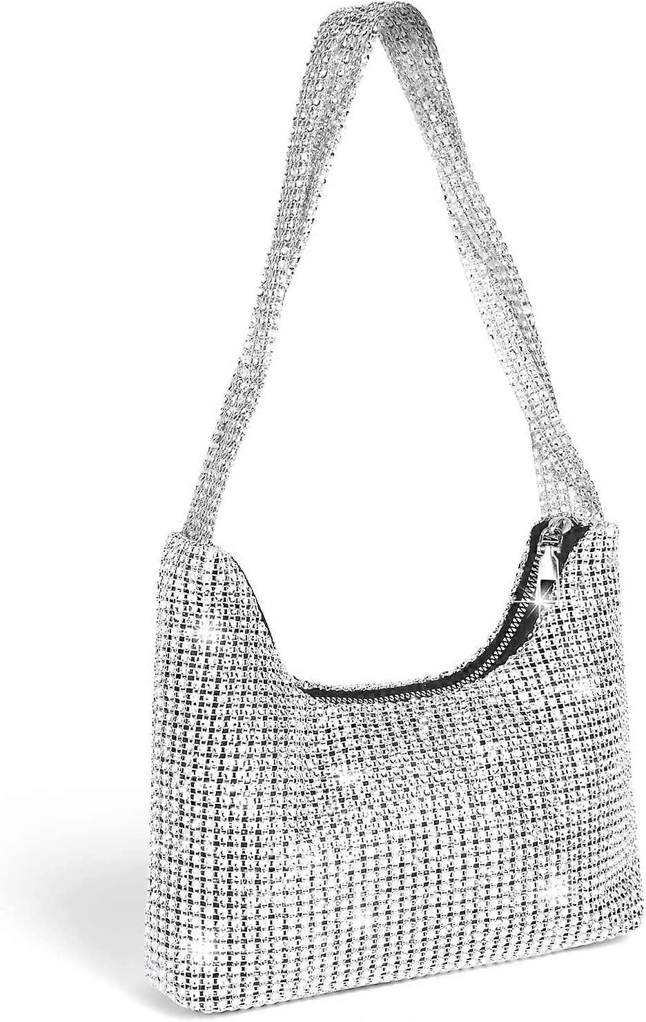 XIANRENGE Rhinestone Crossbody Bag, Women Silver Clutch Bag, Sparkly Rhinestone Purses, Evening Handbag Purse, One Size Cocktail Wedding Engagement Ba